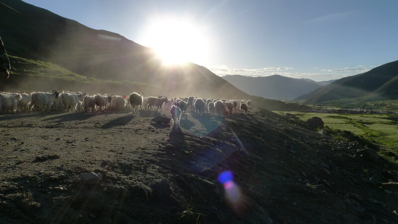 We leave Ganden, ready for our confrontation with the Himalaya. As we look back before passing the pass we see inhabited buildings, it will be several days until we return to this kind of civilisation. The monastery is defying the height and terrain but beyond it only tents and nomads go. Going into the mountains we encounter a rhythm of life alien to us. Driven not by schedules or by chasing the next picture, but by the necessities of the environment. We overcome them with the help of our hired guides and yaks. Our support crew allows us to ignore these necessities, which nevertheless are visible every step along the way.