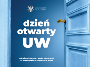 Serdecznie zapraszamy na Dzień Otwarty Uniwersytetu Warszawskiego, który odbędzie się 18 kwietnia (sobota) w godz. 10:00-16:00 na terenie Kampusu Głównego (Krakowskie Przedmieście 26/28). Na kandydatów czekać będą przedstawiciele wszystkich uczelnianych jednostek, a także uniwersyteckich biur, samorządów, kół naukowych i organizacji studenckich.