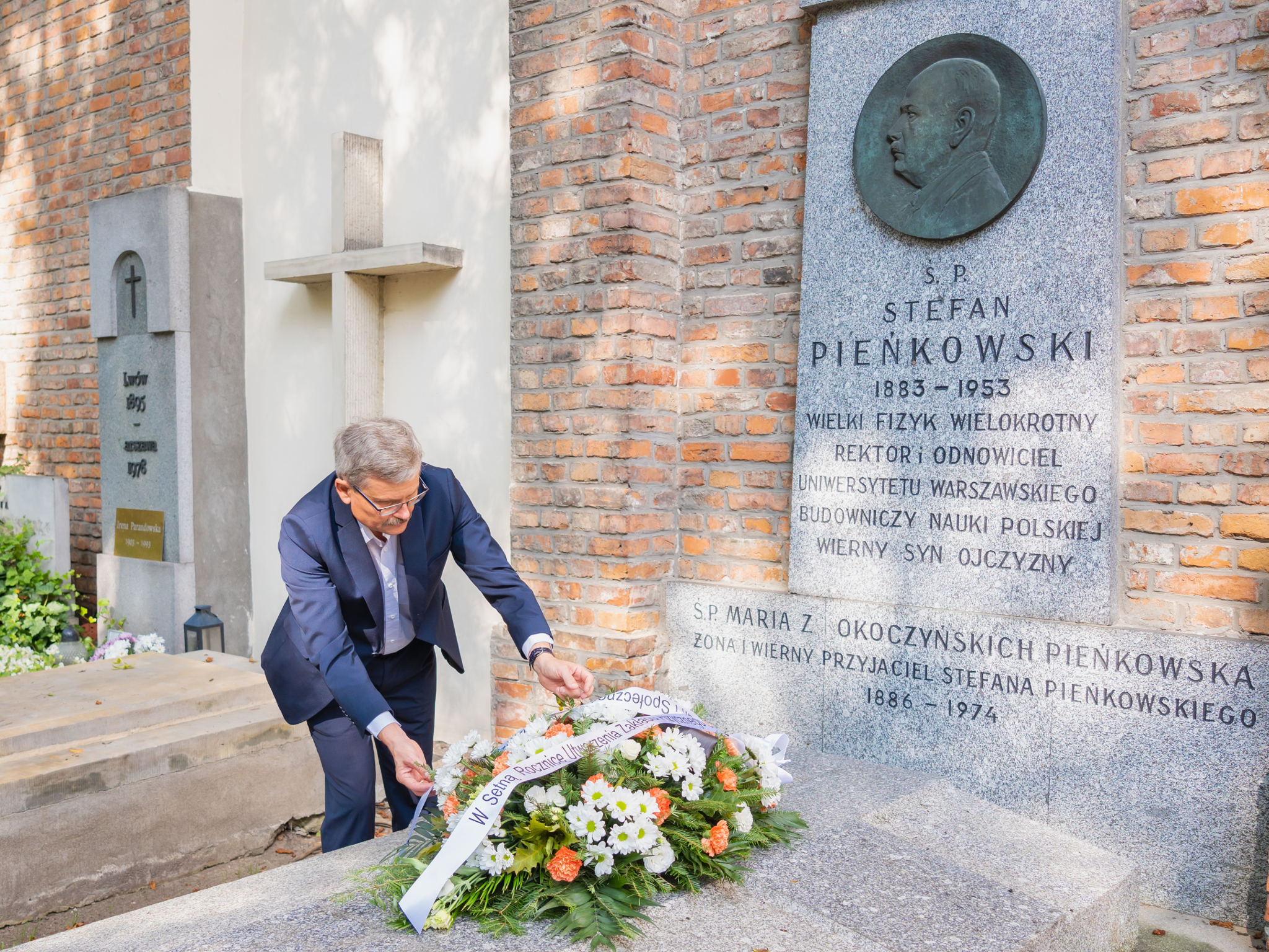 Już po zakończeniu uroczystości, w poniedziałek, dziekan Wasik złożył wieniec na grobie prof. Stefana Pieńkowskiego, któremu zawdzięczamy powstanie warszawskiego ośrodka fizyki przy ul. Hożej 69.