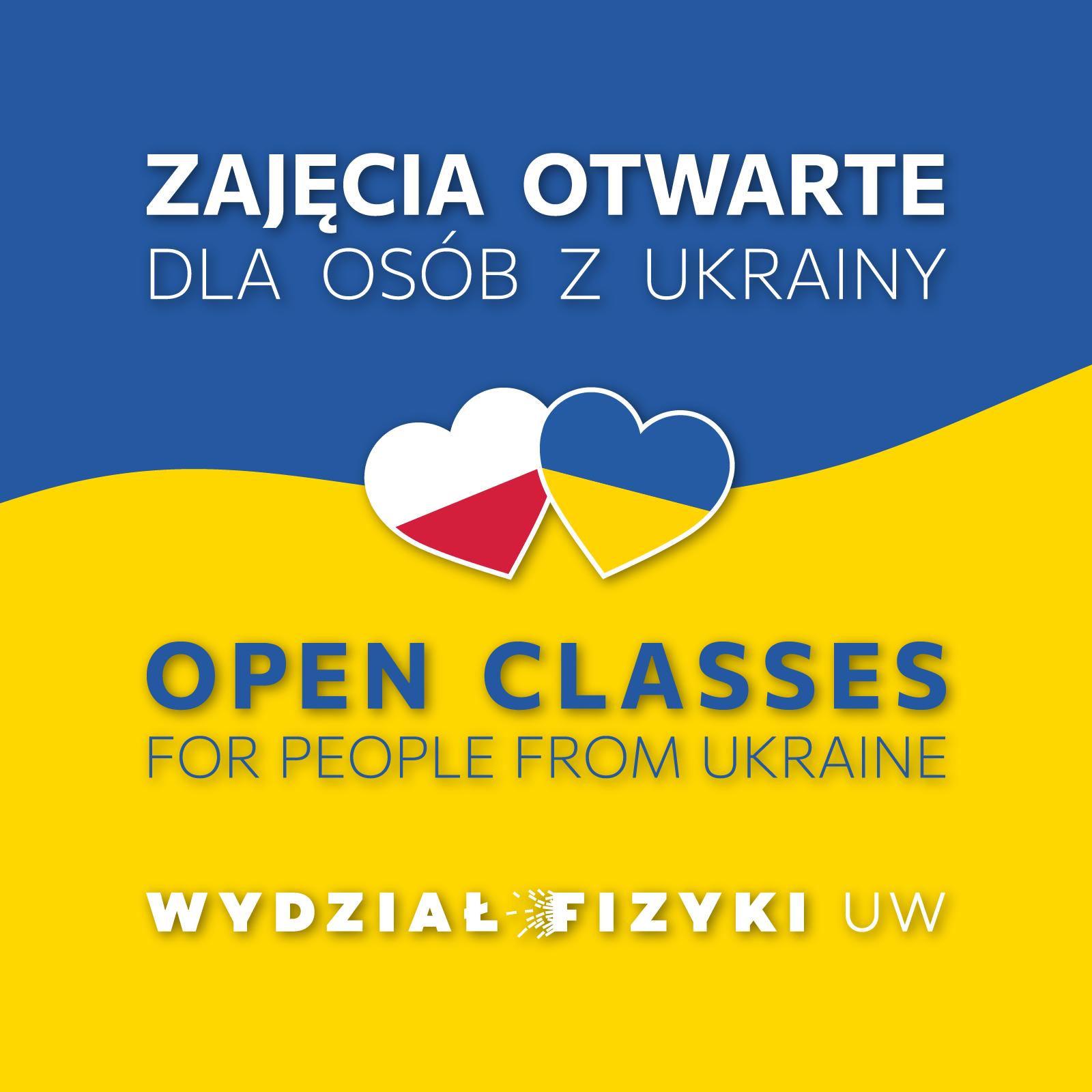The Faculty of Physics of the University of Warsaw invites citizens of Ukraine and all those fleeing the war in Ukraine to participate in classes.