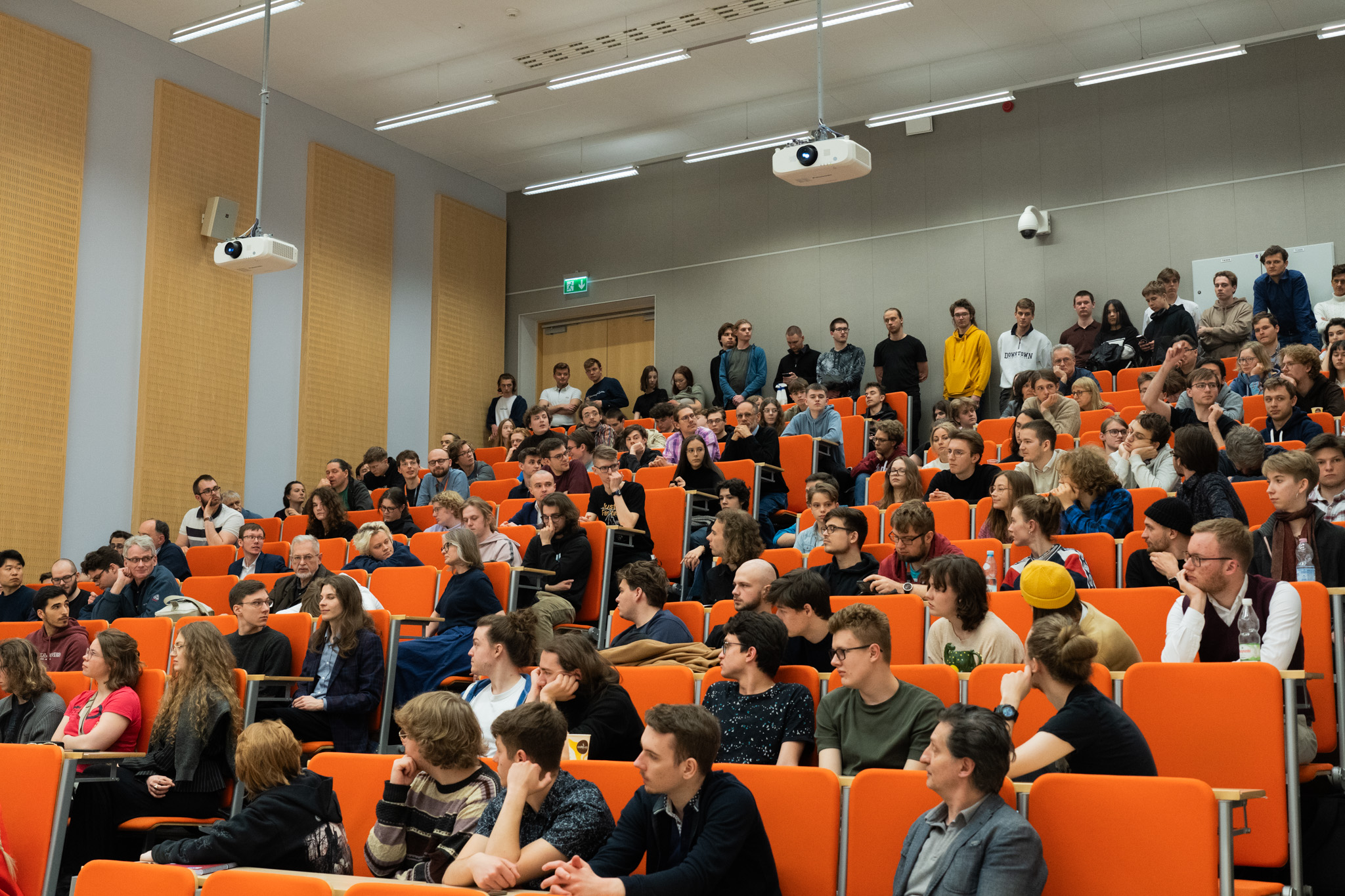 25 kwietnia 2024 r. prof. François Englert spotkał się ze studentami oraz naukowcami Wydziału Fizyki Uniwersytetu Warszawskiego. W ramach spotkania odbył się pokaz niezwykle wzruszającego filmu biograficznego, „Rebel and a Nobel Prize Winner", a następnie noblista odpowiadał na pytania, zadawane przez licznie zgromadzoną publikę.