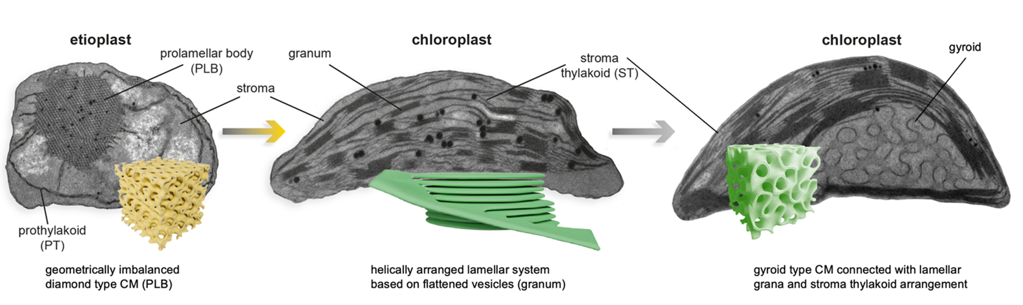 Bicontinuous membranes of plant plastids - where biology meets geometry