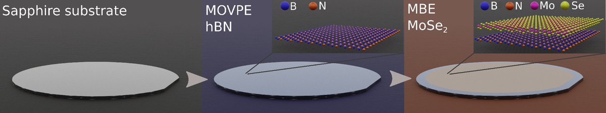 Moreover, thanks to cooperation with MOVPE lab, we obtained really large ares of good optical quality MoSe2 monolayer by direct MBE growth on epitaxial (MOVPE) hBN, on whole 2" wafer. Below, there is a scheme of our growth.
